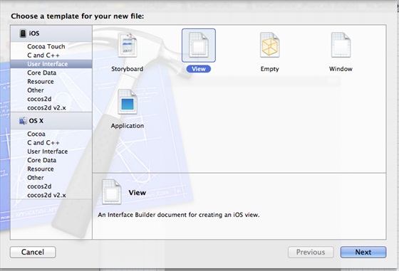 5、将该文件另存为ViewController_iPad.xib,然后选择创建