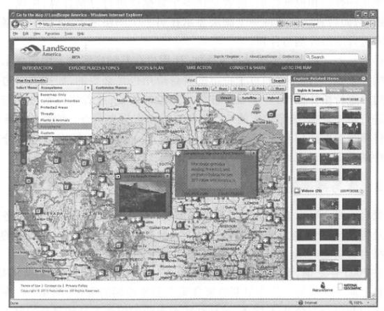 The word “aggregation” originated from popular music and is commonly known as mix, platter or joint singing. It is the mixing or splicing of multiple songs to create a new song. After 2005, aggregation took on a new meaning. The explosive growth of World Wide Web content has not only laid the foundation for resources needed for aggregation, but also created the demand for aggregation applications. The charm of the World Wide Web has attracted the active participation of governments, businesses, institutions and the majority of Internet users. Web services, web pages, blogs, photos and video resources on the World Wide Web are constantly updated and increased. However, the organization and presentation of these content and functions cannot meet the needs of all users. Users often need information from multiple websites, which creates the need to combine (i.e., aggregate) the content of multiple websites in one application (Figure 4.1). 图4.1聚合将多个网站的内容和功能动态地组合起来,生成新的应用 Here are a few examples of aggregation applications: Websites such as BizRate and PriceGrabber extract price information for items from multiple retail websites and organize them on one page, allowing buyers to find the best deals on one website without You must visit multiple websites separately. The HousingMaps website ( http://www.housingmaps.com ) combines home sales information from Craigslist with maps from Google to allow users to see at a glance where homes are sold, their geographical location and surrounding environment. Zillow website ( http://www . zillow. com) Estimate the value of a home and superimpose it on Microsoft Bing Maps to display home prices, area, property taxes, school district and other relevant information. The CrimeMapping website (www.crimemapping.com) displays crime data on ArcGIS Online maps to provide the public with information on community criminal activities. The Stimulus Tracker website ( http://www.Oregon.gov/recovery/StimulusReporting/ARRA_Projects.shtml ) in Oregon, USA superimposes the units and locations where funds were received in the national economic stimulus plan with a map from ArcGIS Online to inform the public of where funds were distributed and the share data received by each department. The public information map website ( http://tmapps.esri.com/TIM/index.html ) locates and displays people’s tweets posted on Twitter, videos posted on YouTube, and photos posted on Flickr on ArcGIS Online maps, so that users can understand what netizens in a certain area are talking about and what they see and hear. Thousands of map applications registered on ArcGIS.com combine ArcGIS Online basic basemaps with user-published geographic information Web services for various topics. The LandScope America website ( http://www.landscope.org/map ), jointly developed by NatureServe and National Geographic, combines Microsoft Bing Maps with nature conservation maps and aggregates a large number of photos, audio and video clips about plants, animals and the natural environment (Figure 4.2). Figure 4.2 The LandScope America website ( http://www.landscope.org/map ) is an example of an aggregation application. It integrates NatureServe’s nature conservation map layers, rich multimedia data on the MetaLens website, and Microsoft Bing Maps to provide online resources related to nature conservation. (Thanks:NatureServe, Microsoft and National Geographic) From these examples, we can see the definition of aggregation: aggregation is a development method that creates new web pages or new applications by dynamically combining resources from multiple websites. This definition has three main points: Web Resources: The Web resources used to build aggregations can be content (such as data and maps) or functions (such as operations or processes). For example, analytical Web services usually encapsulate certain types of business logic, and the Web service can return the business logic (including its functions, and Not just the content). Dynamic: This means that there is a dynamic connection between a converged application and the resources it uses. If the information source is updated, the syndication application will automatically update it immediately or within an appropriate time. Multiple websites: One website can be the aggregation application itself. If you superimpose your pictures on another site map on your website, your website is an aggregation application. Based on the previous definition of aggregation, a geographical aggregation is an aggregation that contains at least one geographical content or function. Geographical aggregation integrates multiple data sources with the same geographical location, which obviously contains the core concept of “overlay” of geographical information systems. Superimposition is often vividly used as a “sandwich cake”(Figure 1.4). Such illustrations often appear on the covers of GIS textbooks or on the icons of GIS institutions. Overlay includes topological overlay and visual overlay. The former divides multiple data layers and generates a new data layer; the latter just displays one layer on top of another layer. There is no graphic segmentation and merging between the two data layers. Most current geographical aggregations are visual overlays, allowing users to add and display some thematic information on top of the basic basemap. Of course, topological superposition is also necessary for specific aggregation applications, such as topologically superimposing flood boundaries and city boundaries to calculate the area of the city submerged by floods; or topologically superimposing flood boundaries and cadastral layers to determine whose property needs to be conducted. Flood damage surveys are needed. Traditional GIS overlay requires multiple data layers to be pre-stored on a local computer, while aggregation can directly read data distributed on the Web and dynamically overlay it. The concept of aggregati