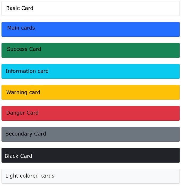 class to create a simple card that can contain header, content, bottom, and various color settings, as shown in the following example: