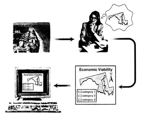 The geographical environment is inherently complex and diverse. To accurately understand, master, and utilize such extensive and intricate information, it requires a refining process that separates the essential from the non-essential and distinguishes truth from falsehood. This necessitates a scientific approach to comprehending the geographical environment. Understanding such complex entities involves an abstract process that progresses from perceptual to rational cognition. When different social sectors or academic disciplines observe the same objective world, they often focus on distinct issues and research subjects, leading to the formation of varied environmental perceptions. Cognition falls within the domain of psychology. Cognitive theory was introduced into cartography as early as the 1970s, employing a “stimulus-response” relational model to study the psycho-physical reactions of map users during map reading. The research on cartographic visualization, which emerged in the 1990s, also applied cognitive concepts, advancing the study of the “stimulus-response” model to greater depth. The essence of cartographic visualization lies in exploring human understanding of spatial objects within the map information transmission process. To meet the demands of spatial information analysis and visualization, cognition should be regarded as an integrated information processing system encompassing perception, attention, mental imagery, memory, learning, reasoning, language, concept formation, problem-solving, emotion, and individual differences. In a simplified cognitive system, the perceptual system receives stimuli from the external environment, processes them through transformation and integration, extracts distinctive features for recombination, and ultimately outputs encoded physical stimuli. The long-term memory system then compares these encoded inputs with internally stored information through pattern matching, leading to the activation of specific memory traces. These activated elements are subsequently transferred to the working memory system, where limited information undergoes elaborate processing before being channeled through the response system to manifest as actions, speech, and expressions. Overseeing this entire framework is the central processor, which controls system operations, determines goal priorities, and monitors ongoing task execution. Figure 2-2 illustrates this architectural framework of spatial cognition. Fig. 12 Spatial cognition # Spatial cognition Geographers and psychologists have conducted extensive research on space, yielding numerous insightful conclusions that form the foundation for studying human spatial decision-making in behavioral geography. Investigating spatial cognition within GIS can guide the development of spatial models and information representation methods that better align with human thought processes. The following section introduces knowledge related to spatial cognition. 1) Formation and development of individual spatial cognition J.Piaget认为,空间认识具有四个层次: The sensorimotor stage, which is founded upon action schemas; The pre-operational stage, which is grounded in mental imagery of the objective world retrieved from memory; The concrete operational stage, which permits the formation of symbolic and systematic mental representations of the environment; The formal operational stage, wherein individuals possess hypothetical-deductive reasoning capabilities and can process abstract spatial concepts independent of actions, objects, or concrete space. Figure 2-3 illustrates the development of spatial cognition throughout an individual’s growth process. Fig. 13 Individual development of spatial awareness # 2) Spatial information coding in consciousness [Elisabeth S. Nelson] Regarding the encoding methods of spatial information in individual consciousness, there are three primary theories: Propositional Theory, Imagery Theory, and Dual-coding Theory. A proposition is a conceptual structure that expresses relationships between objects. It must adhere to the following rules: it must be abstract, associated with a truth value, and conform to specific formal rules. According to Propositional Theory, spatial encoding takes the form of simple statements such as “Oklahoma is north of Texas.” The key tenet of Propositional Theory is that such propositions encode abstract meaning rather than preserving the perceptual characteristics of the original information. The so-called Imagery Theory posits that mental imagery constitutes the fundamental component of spatial cognition. Grounded in a pictorial metaphor, this theory suggests that individuals perceive and process spatial information, then organize it into simplified and more structured forms. This processed information is stored in memory and can be subsequently retrieved and reconstructed into mental images when needed. According to Dual-Coding Theory, linguistic and visual information undergo independent processing while maintaining interconnectedness between their respective cognitive systems. The imagery system organizes elementary visual components into hierarchical structures capable of spatial manifestation, whereas the verbal system concurrently processes non-visual information by integrating it into higher-order sequential architectures. Geographic information system is information processing system, that is, input information, encode, store memory, make decisions and output results. This is why the process of environmental information flow in the human brain is simulated and replicated by GIS. Of course, the purpose of cognition is to solve problems, that is, to find solutions to problems. Cognitive operations include conventional problem solving and creative problem solving. An environmental image can be regarded as an acquired and stable mental construct that synthesizes an individual’s understanding, evaluation, and decision-making capacity regarding 