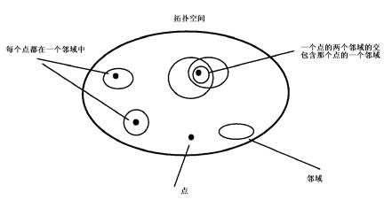 As can be seen from the table, the topological attributes describe the relationship between two objects, so they are also called Topological Relations. Figure 3-13 is a formal representation of topological spatial relations. Fig. 39 Points and neighborhoods in Topological Spaces #