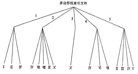 Figures 7-10 and 7-11 are respectively polygonal and line file tree index sketches of Figure 7-9. Its document structure is as follows: Fig. 97 Tree index between lines and polygons # Fig. 98 Tree index between points and boundary lines #