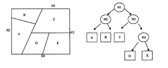 BSP tree is a binary tree, which divides the space into two parts step by step (Figure 7-19). BSP tree can be well adapted to the distribution of spatial objects in spatial database, but in general, BSP tree is deep and has adverse effects on various operations. Fig. 105 BSP Tree #
