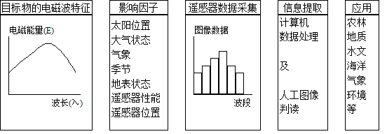 From the definition of remote sensing, we can see that, firstly, the remote sensor does not contact with the research object directly, that is to say, the “remote” here does not mean “remote”; secondly, the purpose of remote sensing is to obtain the characteristic information of the research object; finally, the data obtained through the sensor device will go through a processing process before being used. Figure 12-3 describes the process from acquiring remote sensing data to application. Fig. 190 Remote sensing data process #