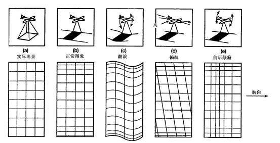 Image correction is a process of eliminating image distortion, including radiation correction and geometric correction. Radiation distortion is usually caused by solar position and atmospheric absorption and scattering. Geometric distortion (Figure 12-5) is caused by velocity, attitude change of remote sensing platform, sensor and topographic fluctuation. Geometric correction includes rough correction and precise correction. The former is corrected according to relevant parameters. The latter is constructed by collecting ground control points (GCPs, Ground Control Points). Correction polynomials are established and corrected. Fig. 192 Geometric distortion of remote sensing images [Lillesand and Kiefer] #
